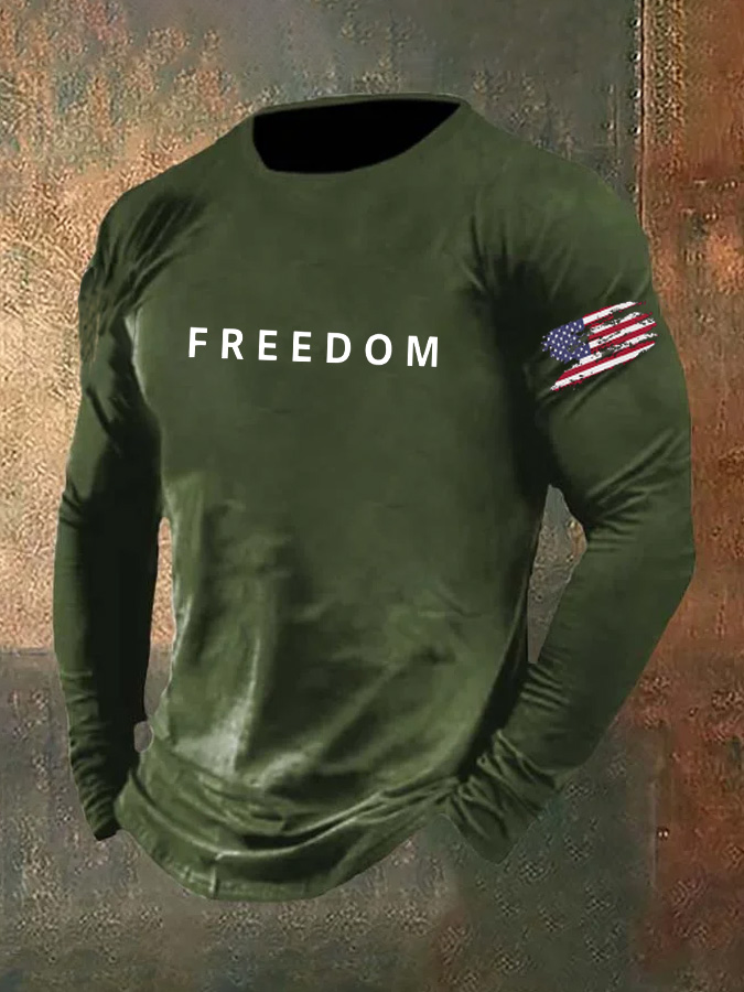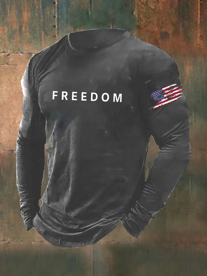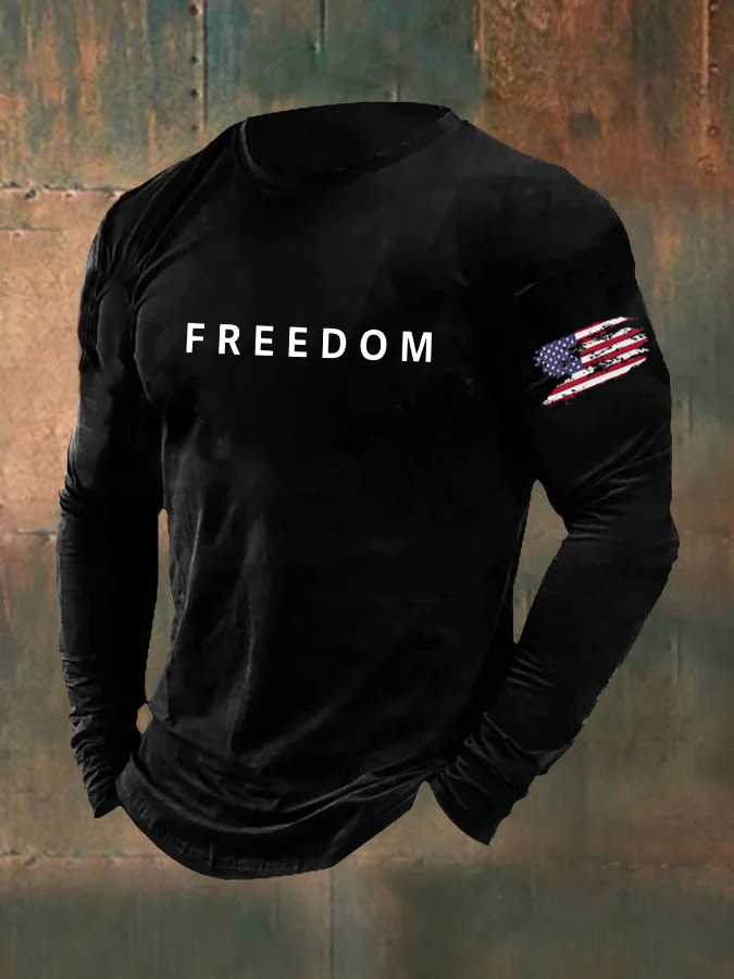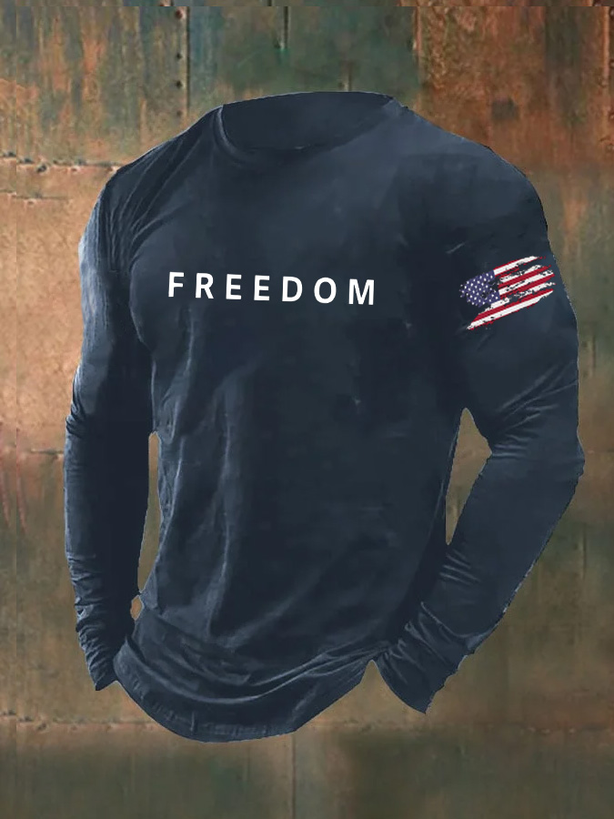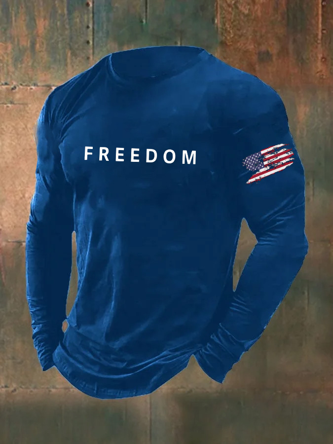 Men's Freedom Pattern Long Sleeve 100% Cotton T-Shirt