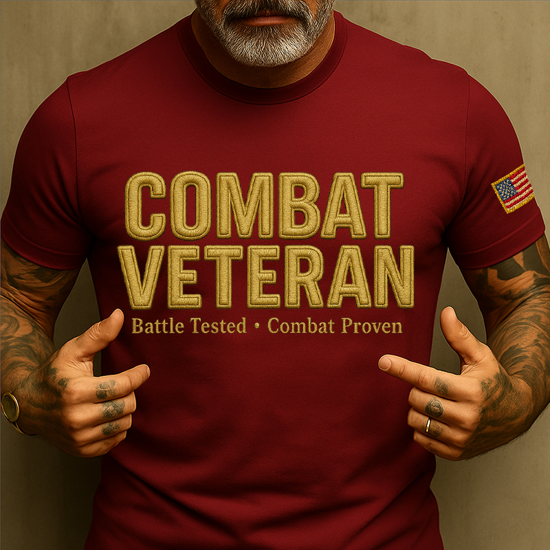 Men's Casual Veteran Red Pride Print T-Shirt